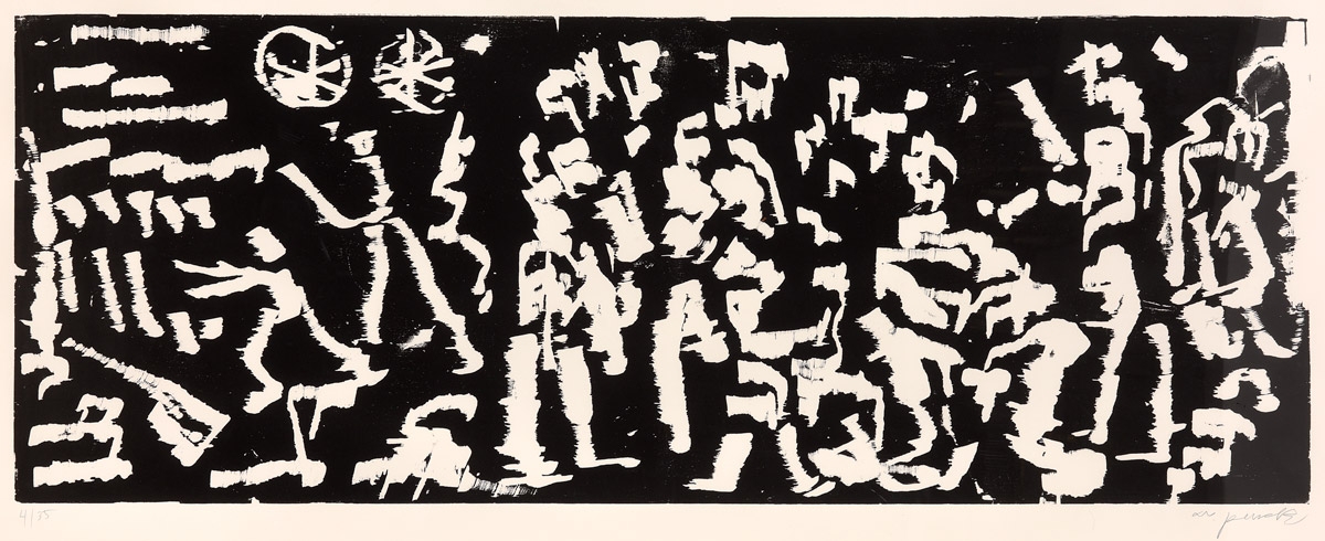 Wie eine Zuflucht in andere „Welten“, bevölkert durch symbolhafte Kürzel, tierische Symbole, Gesten und magische Fabelwesen, erscheinen die Werke A.R.Pencks. Minimalistische Kompositionen, die an die Bildsprache von Höhlenmalerei und Graffiti erinnern, zeigen dem Betrachter ausdrucksstark ihre Symbolkraft.